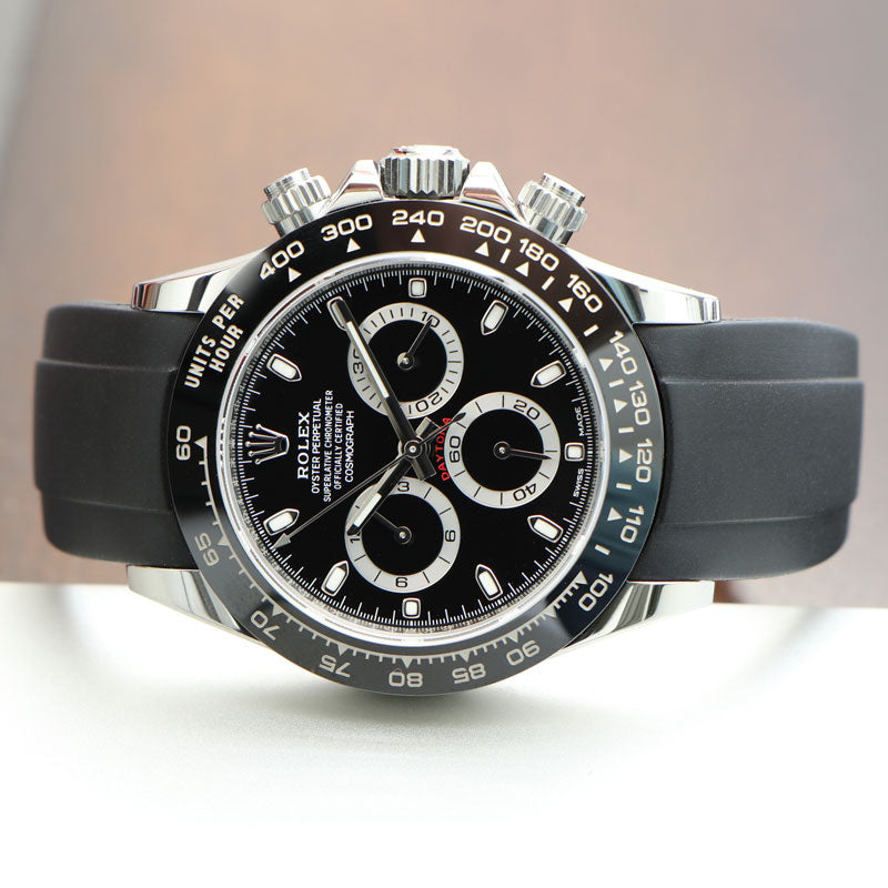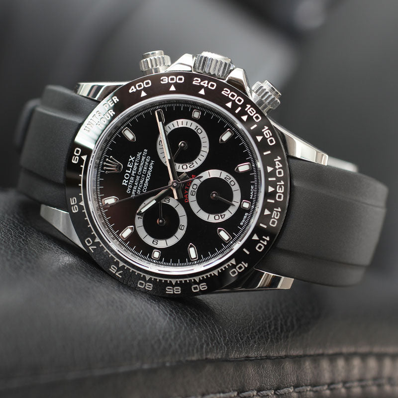 Les bracelets en caoutchouc Everest à extrémité incurvée sont intentionnellement et méticuleusement conçus pour créer une connexion parfaite entre le boîtier et votre Rolex Daytona. Le bracelet en caoutchouc à extrémité incurvée, facile à installer, est équipé de barrettes à ressort de qualité Rolex. Au point de connexion, il y a un insert en plastique durci. Cela permet de renforcer la connexion avec le boîtier.