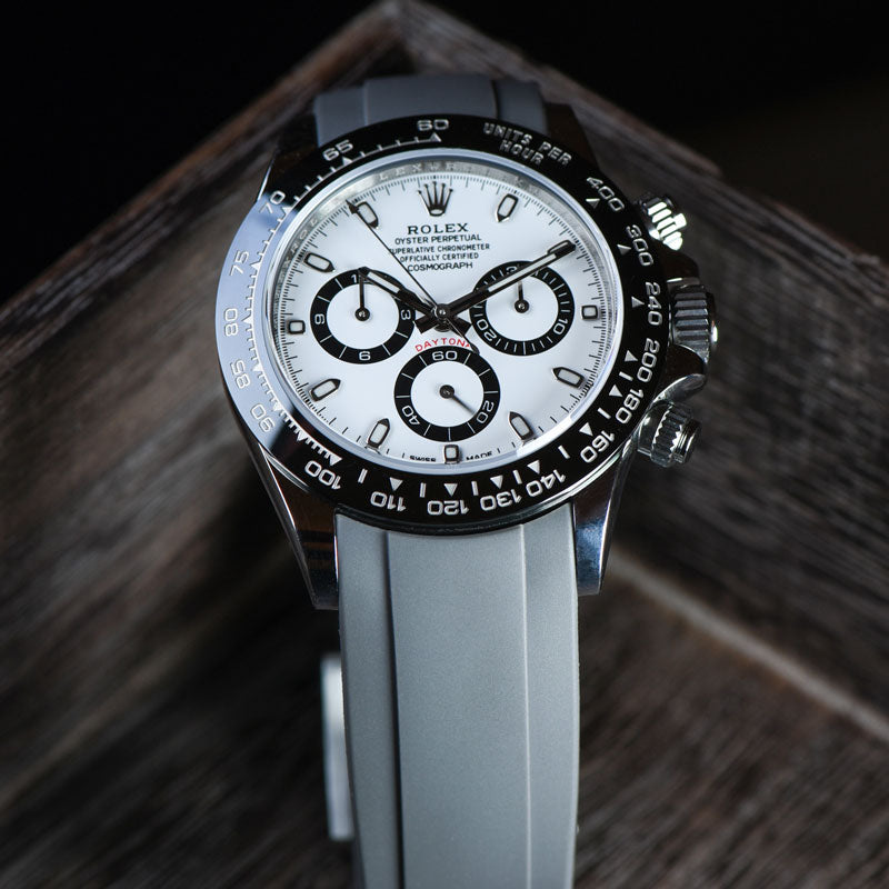 Votre Rolex Daytona a été conçue avec soin. Le bracelet sur lequel vous la mettez ne doit pas être différent. Le bracelet en caoutchouc Curved End d'Everest épouse les contours de votre montre et, plus important encore, les contours de votre poignet. Avec une silhouette légèrement effilée, ce bracelet reste à l'écart, tout en offrant un sentiment de sécurité. Le dessous comporte des canaux de circulation d'air pour une expérience respirante et imperméable à la transpiration. Aucun détail n'a été négligé lors de la conception de ce bracelet, qui convient parfaitement à votre Rolex Daytona.