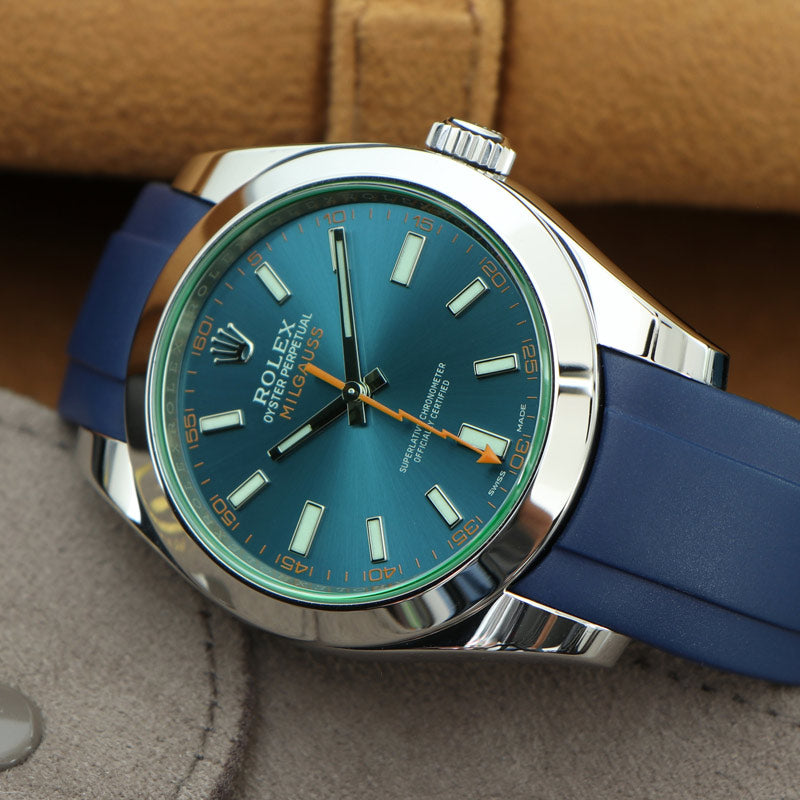 Le bracelet Everest en caoutchouc à bout arrondi est le complément idéal de votre Rolex. Il donne à votre montre un aspect plus décontracté et sportif, tout en lui conférant une allure élégante et haut de gamme. Les bracelets Everest sont conçus pour être si confortables que vous ne voudrez peut-être plus jamais remettre votre bracelet Rolex.