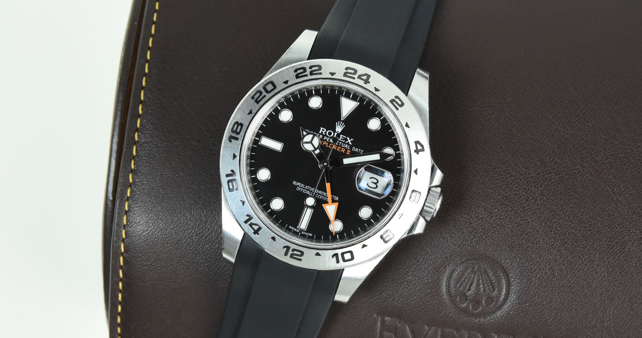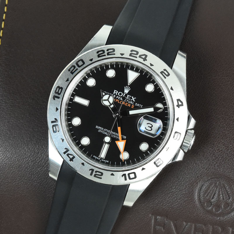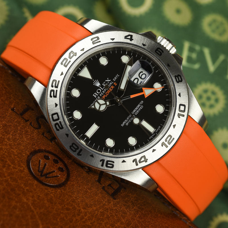 Le bracelet déployant Everest en caoutchouc à extrémité incurvée est notre produit le plus populaire pour une raison bien précise : il est superbe sur n'importe quelle montre, mais surtout sur la Rolex Explorer 42 mm. Il permet à votre montre d'avoir un look plus décontracté et sportif tout en intégrant votre fermoir Rolex d'origine. Les bracelets Everest sont conçus pour être si confortables que vous ne voudrez peut-être jamais remettre votre bracelet Rolex Explorer 42mm.
