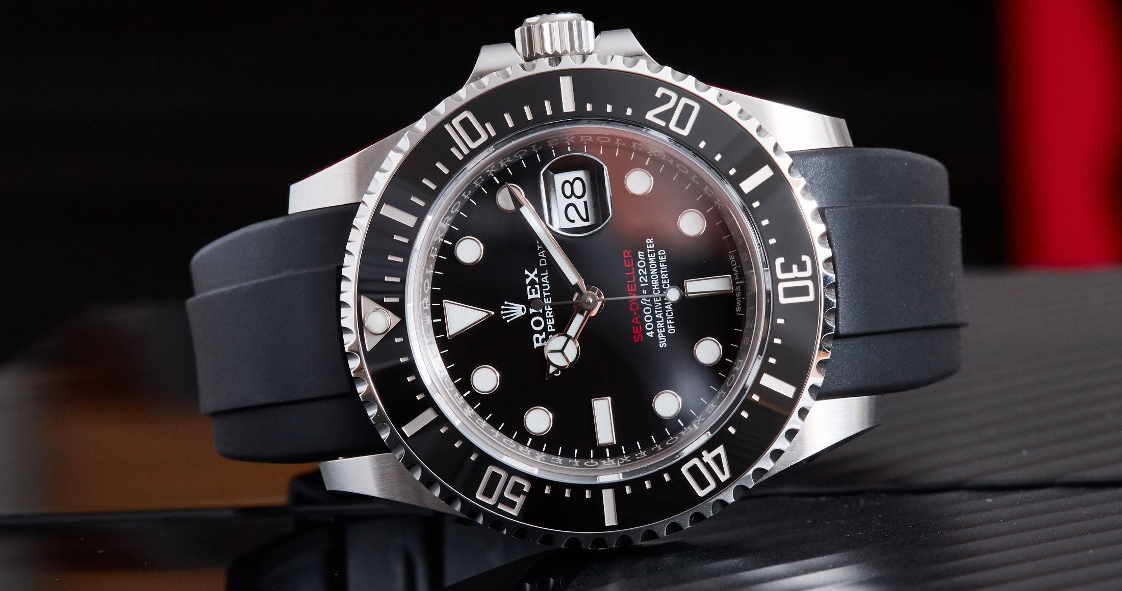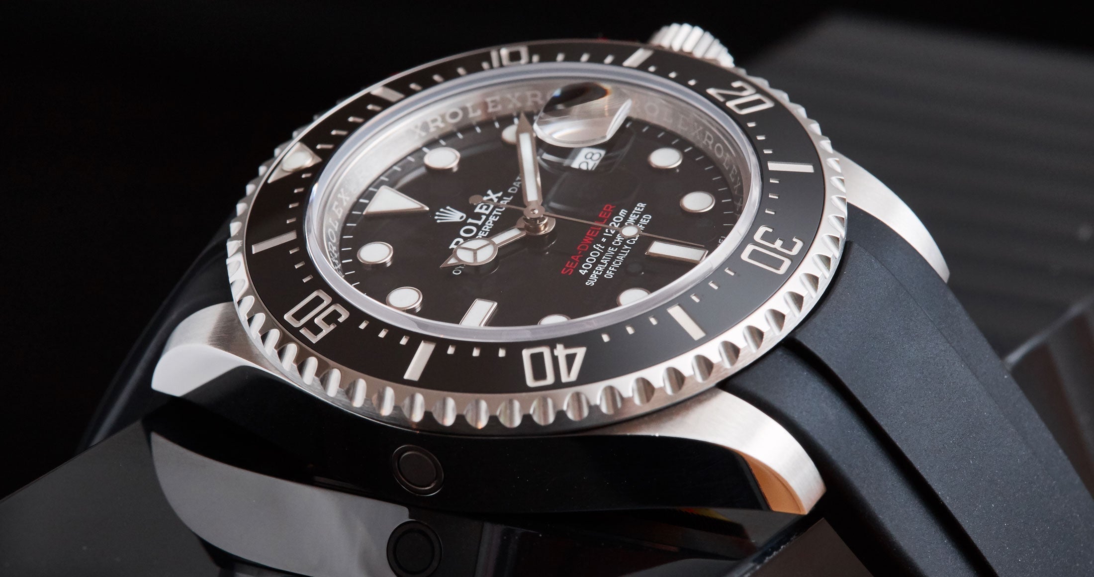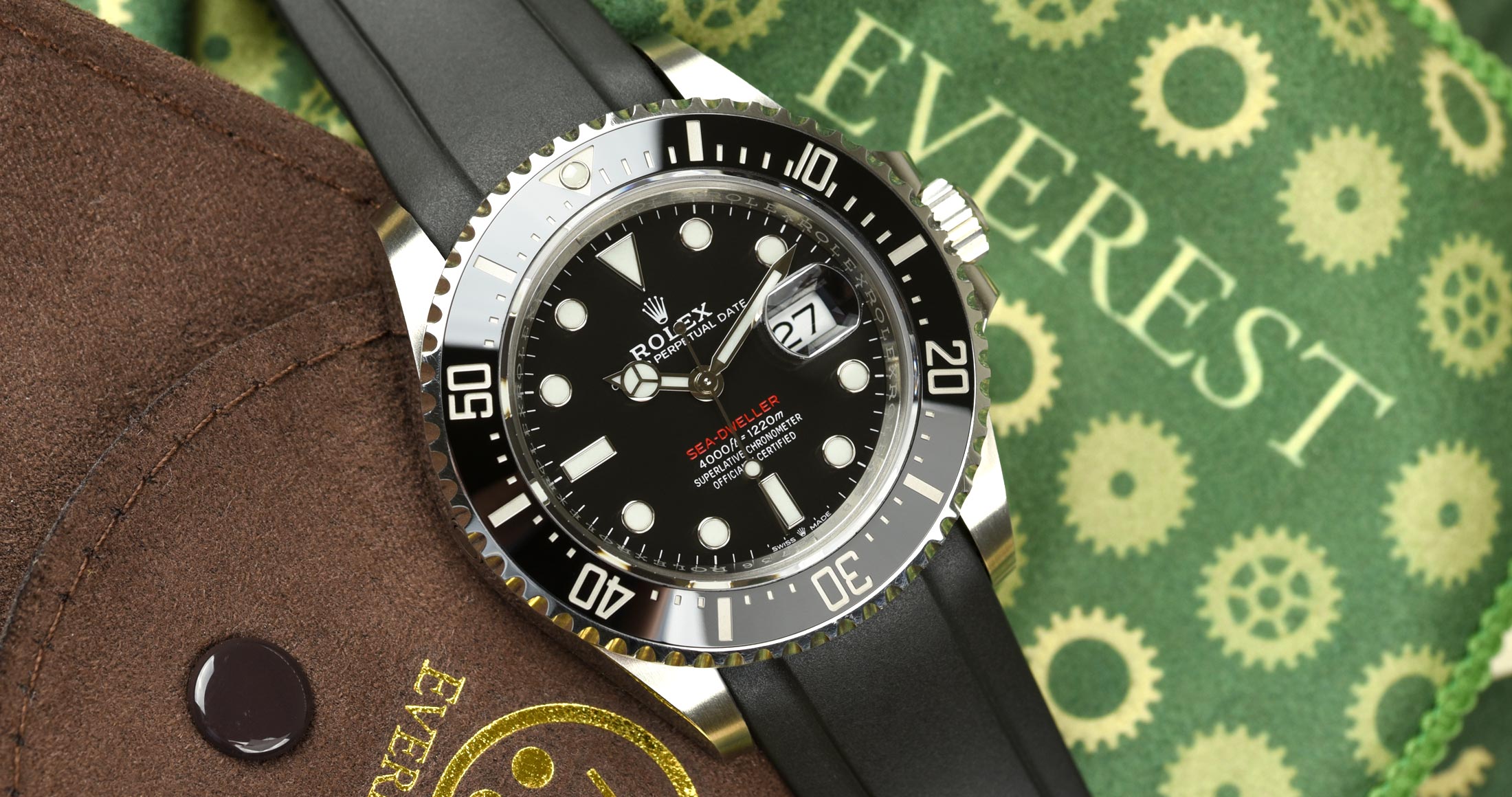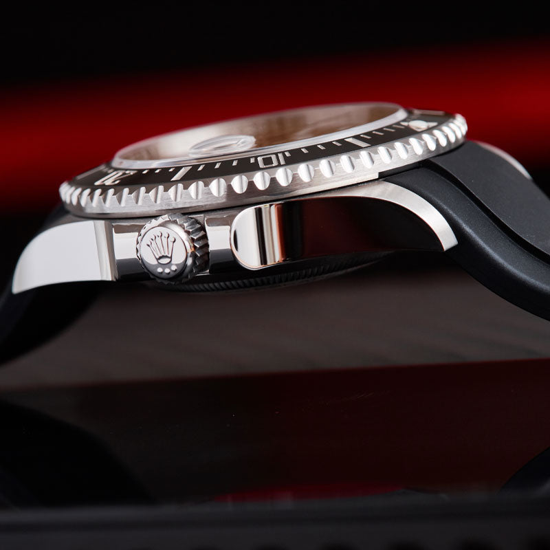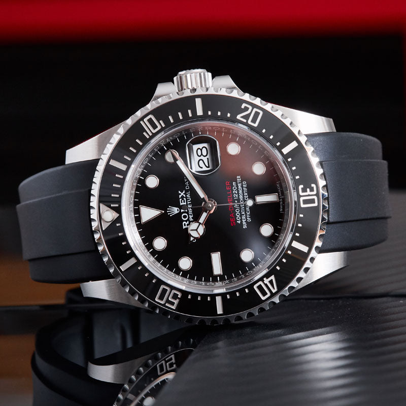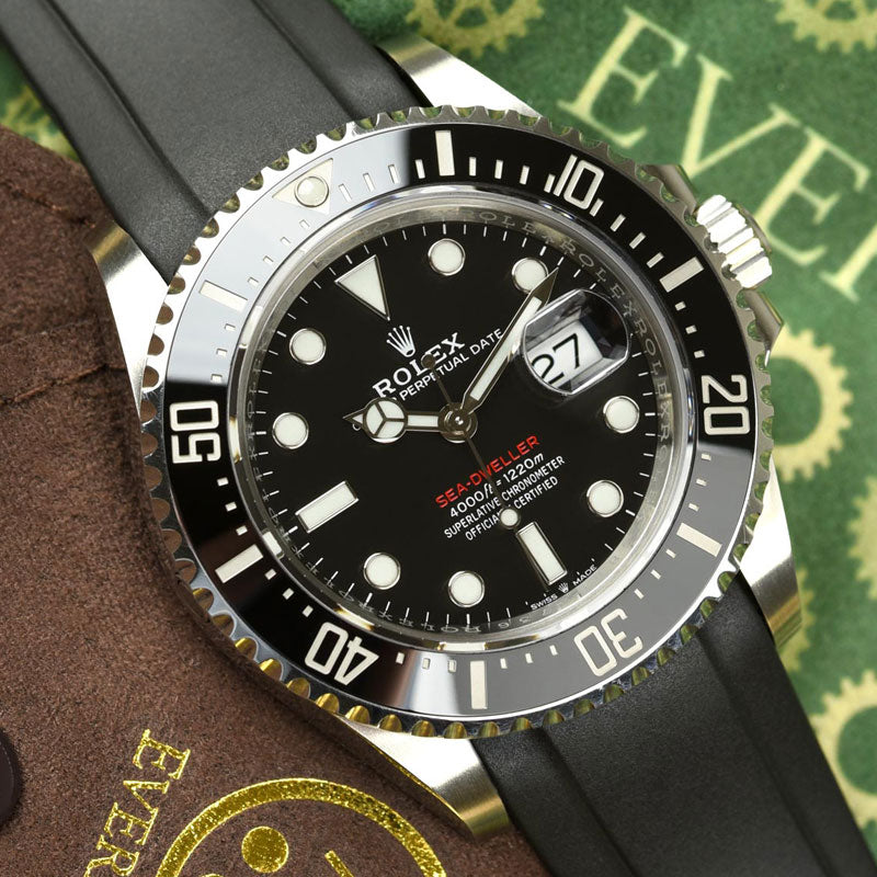 Les bracelets Everest Curved End Rubber sont intentionnellement et méticuleusement conçus pour créer une connexion parfaite entre le boîtier et votre Rolex Sea Dweller 43mm. Le bracelet en caoutchouc à extrémité incurvée, facile à installer, est équipé de barrettes à ressort de qualité Rolex. Au point de connexion, il y a un insert en plastique durci. Cela permet de renforcer la connexion avec le boîtier.