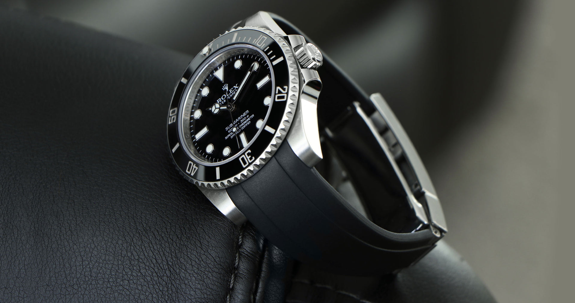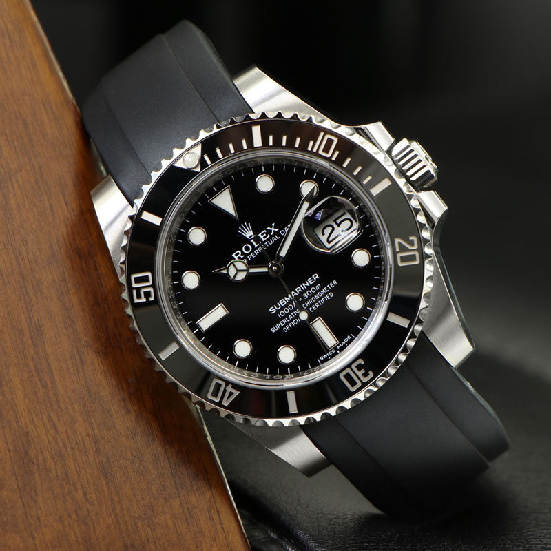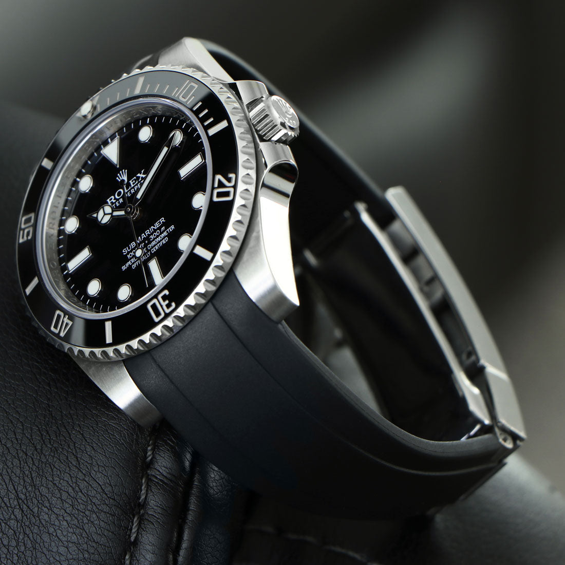 The Everest curved end rubber deployant strap is our most popular product for a reason, it looks amazing on any watch, but especially the Rolex Submariner Ceramic. It allows your watch to have a more casual and sporty look while integrating your original Rolex clasp. Everest straps are designed to be so comfortable, you may never want to put your Rolex Submariner Ceramic bracelet back on.