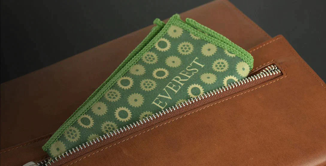 L'extérieur est en cuir de veau tanné naturellement, et chaque bord est fini de façon classique dans un style français. L'intérieur est fait d'un matériau souple pour une protection maximale contre les rayures, avec trois pochettes intérieures amovibles pour les montres, pour un accès facile.